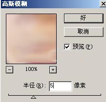 2.新建一個圖層按Ctrl + Shift + Alt + E蓋印圖層,執行菜單:濾鏡 > 模糊 > 高斯模糊數值為5,確定后加上蒙版用黑色羽化畫筆工具把除人物臉部皮膚部分的都擦出來如圖3