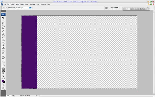 大約1/7畫布寬的選區(qū),填充選區(qū)顏色為#490d69。