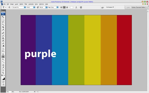 按Ctrl + D取消所選區(qū)域,然后使用水平文字工具,寫出第一個字母。這是用白色寫的紫色名字。在本教程中我使用了Myraid Pro字體。