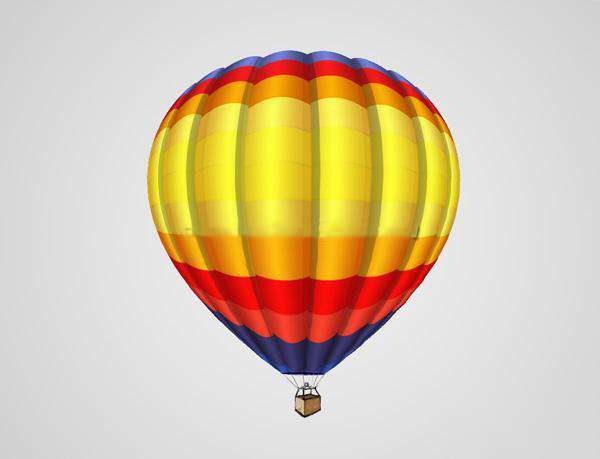 本教程介紹熱氣球的快速制作方法。大致流程:先用矩形工具等做出等寬的矩形色塊,然后渲染邊緣的暗調及中間的高光做出立體感。適當把做的圖形球面化后再復制,組合,再變形做出需要的球面即可。