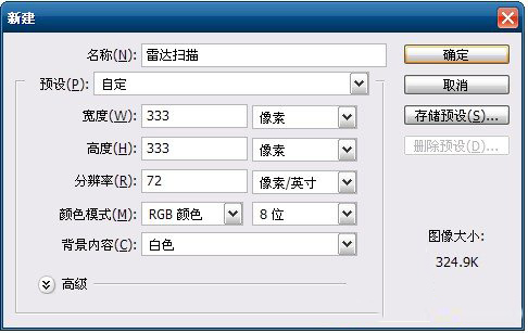 1,打開PS,新建一個333*333像素的文件,如圖: