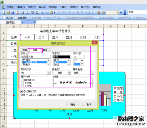 8、我們再來改變一下圖表的字體,也是雙擊圖表的空白區(qū)域,選擇字體,設置字體的樣式。