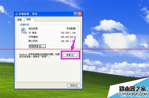 5、接著,點(diǎn)擊窗口中的“修復(fù)”按鈕。修復(fù)完成后,關(guān)閉窗口,就完成了。如圖