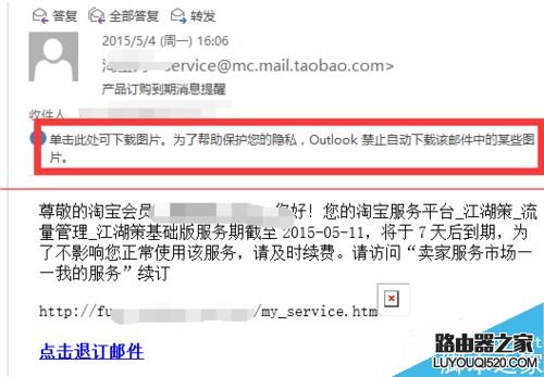 1、情況如下,每次打開outlook的時候 這里的圖片是無法自動顯示的。你可以單擊下載