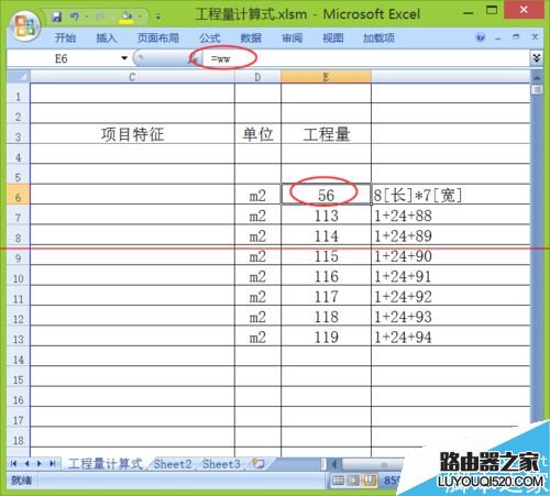 注意了工程量計算式!是我的工作表,F6為要相對引用,且為計算公式位置,這個位置可以修改