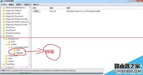 4、在ContextMenuHandlers項目下,除了New和Sharing,其他選項都刪除。關閉注冊表,回到桌面試試你的菜單右鍵是不是快了很多。
