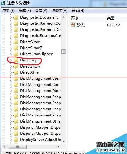 2、在注冊表中展開第一項HKEY_CLASSES_ROOT,找到Directory。