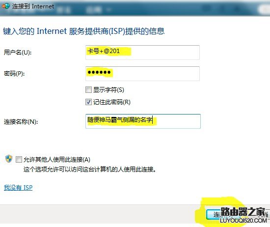 鍵入卡背面的賬號密碼(卡號后要加@201),點擊連接