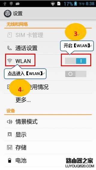 3. 點擊“WLAN”右側開關使其為亮色,點擊“WLAN”進入;如圖2-3所示: