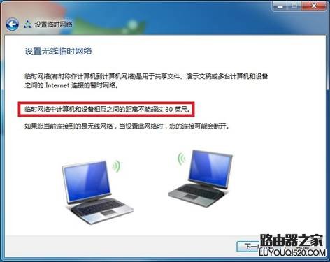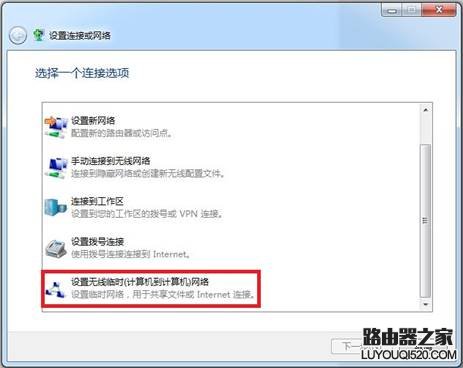 3. 在彈出的對話框中“設置無線臨時(計算機到計算機)網絡”,然后點擊下一步;如圖1-4所示: