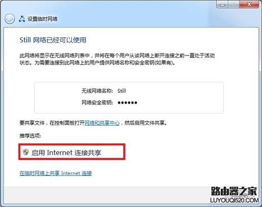 6. 單擊啟用Internet連接共享按鈕,以開啟共享網絡;如圖1-7所示: