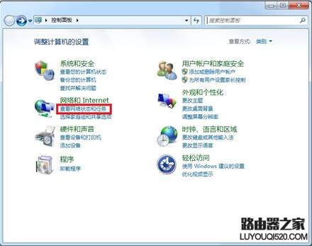 也可以通過點擊控制面板中的網絡和Internet中的查看網絡狀態和任務;如圖1-2所示:
