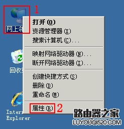 2、檢查 TCP/IP 設置 2.1 在系統桌面找到“網上鄰居”圖標并單擊鼠標右鍵,在彈出的菜單中選擇“屬性(R)”。如下圖所示: