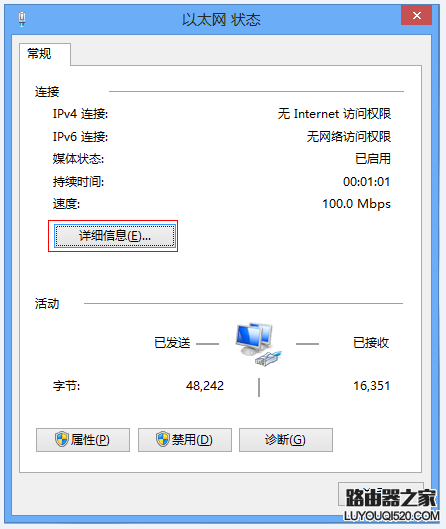 Windows 8操作系統有線網卡MAC地址查詢方式如下: