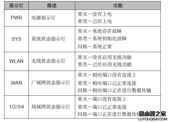 WAN 廣域網狀態指示燈:常亮表示相應端口正常連接;閃爍表示有數據傳輸。