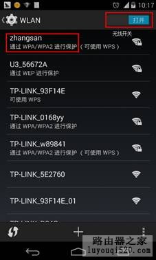 第三步:打開 WLAN 無線開關后,在顯示的信號列表中找到并點擊路由器的信號。如下圖所示: