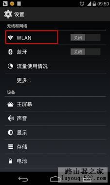 第二步:在 設置 菜單中,找到 無線和網絡,點擊 WLAN,如下圖所示: