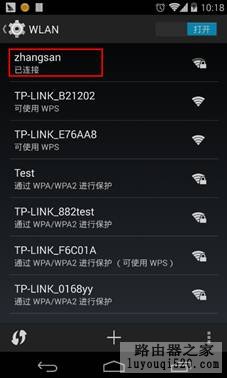 第四步:在WLAN列表中找到該無線信號,會顯示 已連接。如下圖所示: