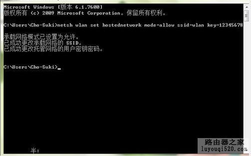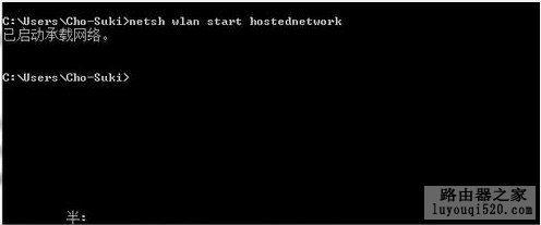 回到命令指令符,輸入:netsh wlan start hostednetwork