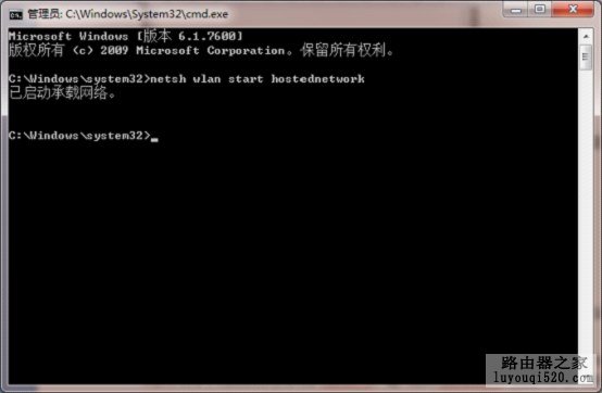 繼續(xù)在命令提示符中運行:netsh wlan start hostednetwork