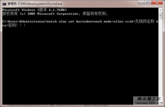 運行命令:netsh wlan set hostednetwork mode=allow ssid=wuminPC key=wuminWiFi