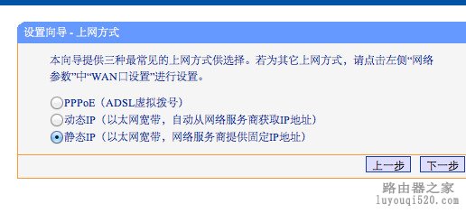 step3,選擇靜態(tài)IP,因為咱學校這種也是用路由器或集線器綁定的MAC和IP。只能選這個。