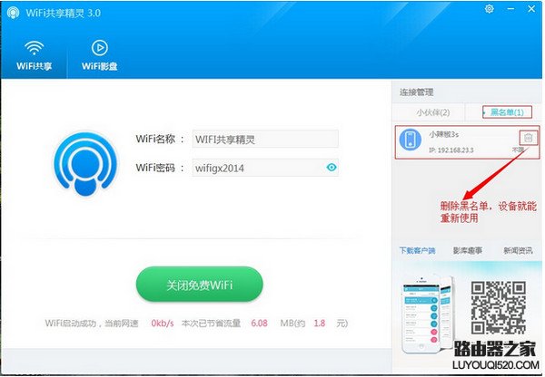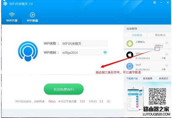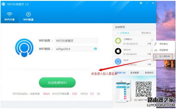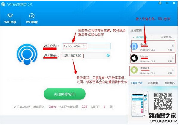 電腦下載WIFI共享精靈,開啟免費WIFI,智能設備連接共享熱點,無需流量即可免費上網!