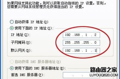 14、如果新電腦還無法上網,再繼續進行如下設置,在新的電腦上執行第四步,后執行第十二步,在“IP地址”填:192.168.1.2,—192.168.1.254,都可以,只要不重復就可以。“子網掩碼”:255.255.255.0,“默認網關”:192.168.1.1。