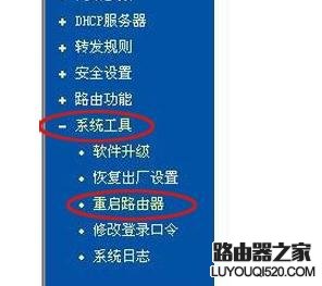 11、然后在“系統工具”一欄,選擇“重啟路由器”。在網上的設置到此結束。