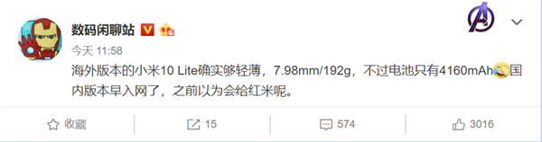 小米10青春版曝光:大電池長續航,厚度