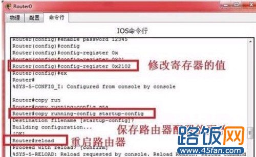 接著輸入命令改變配置寄存器的值為 0x2142,然后再次的重新啟動(dòng)路由器。