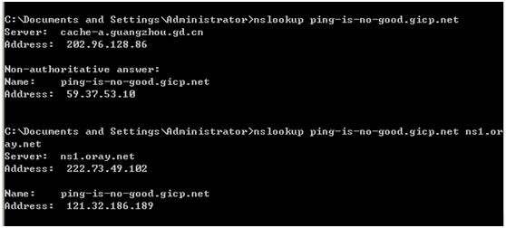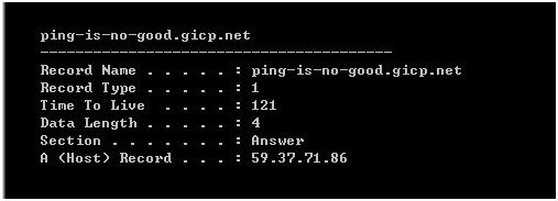 例如ping ping-is-no-good.gicp.net,返回的ip是59.37.71.85,如下圖: