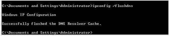 這時(shí)用命令” ipconfig /flushdns”可以清除本機(jī)DNS緩存中的所有記錄,如下圖所示: