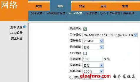 第四步,無線配置,基本設(shè)置這個(gè)比較簡(jiǎn)單,首先將無線開關(guān)選中打開,其它不變。