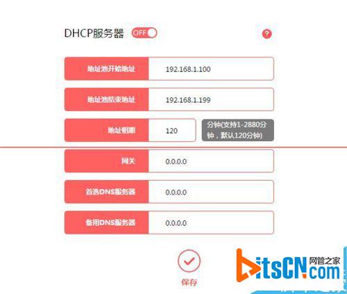 5、直接在中間這里DHCP服務器這里直接點一下撥到OFF,再保存即可保存設置關閉DHCP。