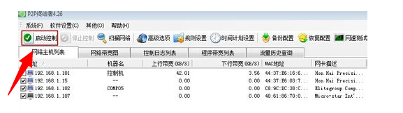 6、最后點擊“啟動控制”按鈕,則所有被勾選的計算機網速將會受到限制。如果需要停止控制其它計算機的網速的時候,只需要點擊一下“停止控制”即可。