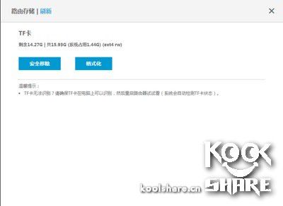 路由存儲部分,似乎TF卡只能格式化成EXT4格式才能識別