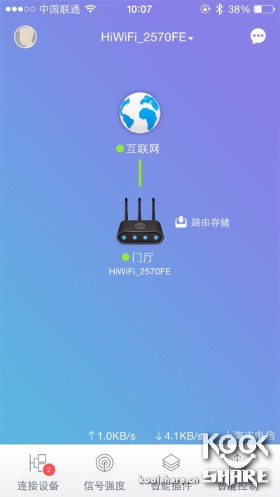 首先是首頁網絡地圖,右上角的消息,可以推送陌生設備的接入信息,放置被蹭網。左上角可以設置賬戶信息
