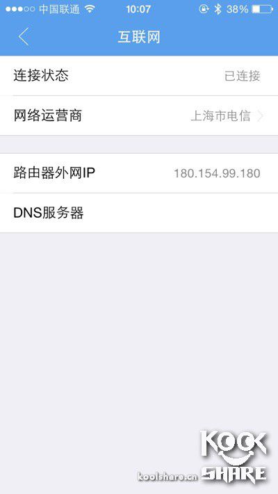 點互聯網圖標,可以查看鏈接狀態,運營商,IP地址,設置DNS服務器