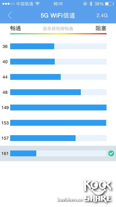 同時,還能夠檢測2.4G和5G網絡各頻道的情況,方便用戶設置成最暢通的信道,避免擁堵。