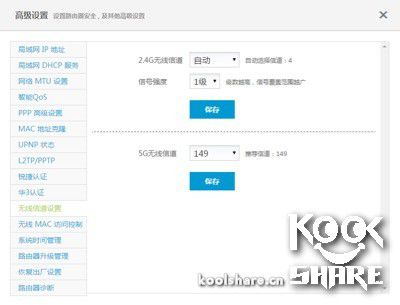 信號強度標簽頁,可以針對2.4G設置四檔的信號強度