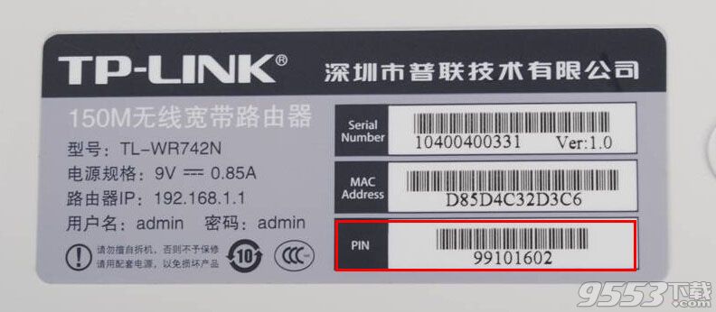 支持WPS功能的無線路由器,在出廠的時候,都有一個默認的PIN碼,在路由器底部黏貼的小標簽上面,如下圖所示。
