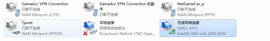 單擊右鍵選擇“無線網(wǎng)絡(luò)連接”圖標(biāo)(如圖最后一個(gè)圖標(biāo)),選擇“屬性”