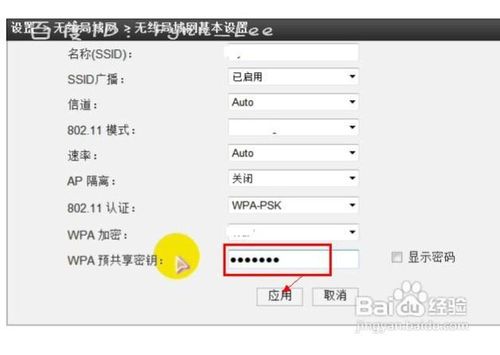 如圖,在界面文本框中輸入無線網(wǎng)共享密碼,點擊“應(yīng)用”按鈕即可修改密碼。在彈出的對話框中點擊“確定”按鈕即可成功設(shè)置無線網(wǎng)密碼。