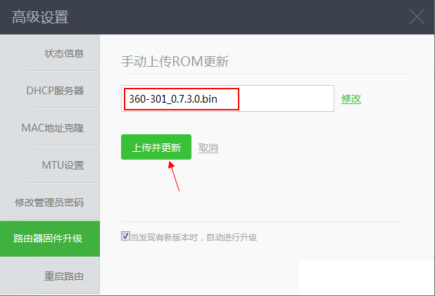 360安全路由系統ROM升級方法:
