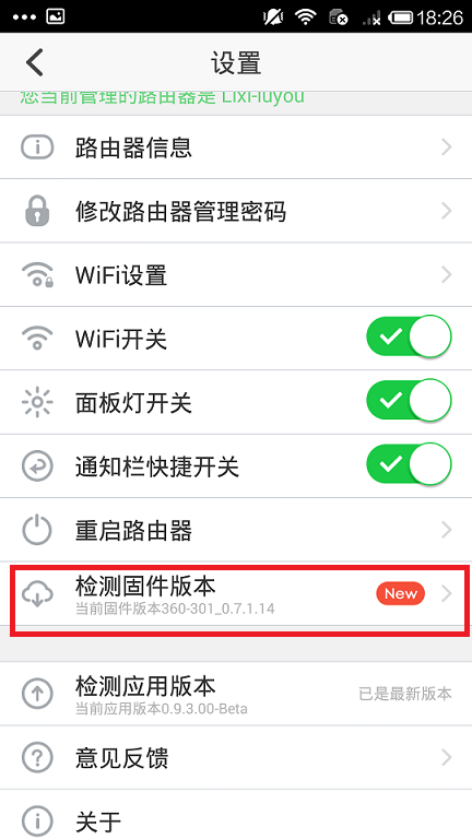 1)手機APP端升級方法:點擊設置—檢測固件版本,如下圖: