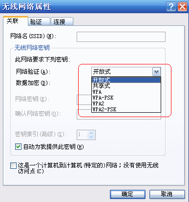 查看系統是否支持該加密方式:“無線網絡屬性”中選擇“關聯”,在“網絡驗證”中查看一下您的系統是否支持