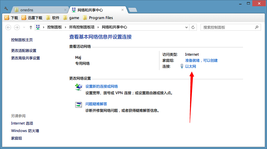 2.在右側的查看活動網絡中,單擊當前已連接的網絡。(如果你有多個網絡連接,請選擇當前正在使用的連接。)