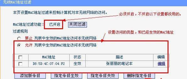設(shè)置完之后,一定要查看MAC地址過(guò)濾功能是否是“已開(kāi)啟”,如果不是已開(kāi)啟設(shè)置的都是沒(méi)用的。而還要選擇“允許列表中生效的MAC地址訪問(wèn)本無(wú)線網(wǎng)絡(luò)”才行的,不然是不行的。