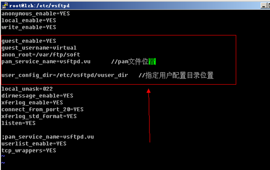 7、修改vsftpd.conf 主配置文件,啟用虛擬用戶支持